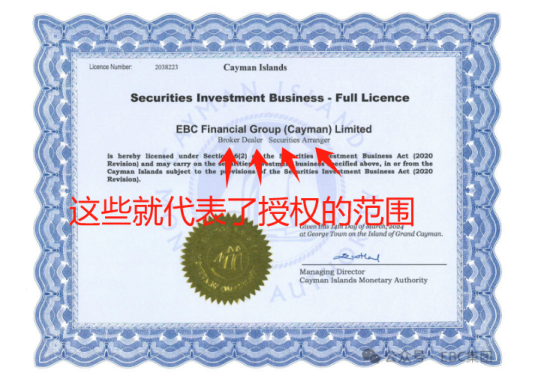 EBC그룹이 취득한 최신 CIMA 라이선스가 완전한 사업 허가를 획득했다는 점은 언급할 가치가 있습니다. 모든 사업 허가를 획득한 이 완전히 규제된 CIMA 라이센스는 10년에 한 번만 발급되었으며, 이는 모든 허가를 획득하는 것이 얼마나 어려운지를 보여줍니다.