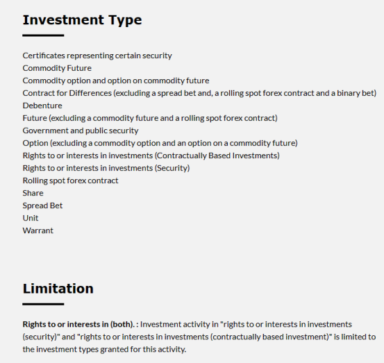 FCA 라이센스로 돌아가면, 현재 업계의 플랫폼은 일반적으로 4~5개의 인증만 제공합니다. 예를 들어 아래 플랫폼은 CFD 관련 거래만 제공하는 경우 해당 플랫폼이 인증 범위를 초과합니다.